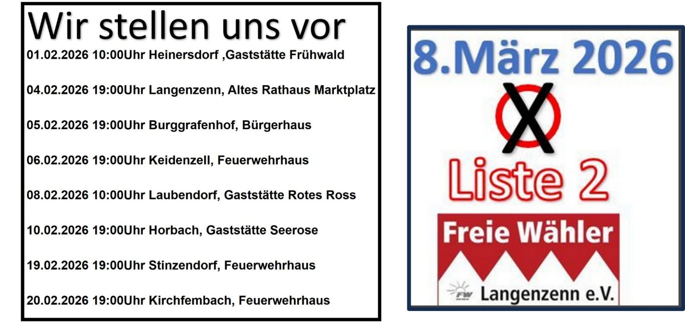 Sie haben die Wahl für Langenzenn und den Aussenorten eine vernünftige und mit Menschenverstand geführte Liste 2 "Freie Wähler Langenzenn e.V." zu wählen.